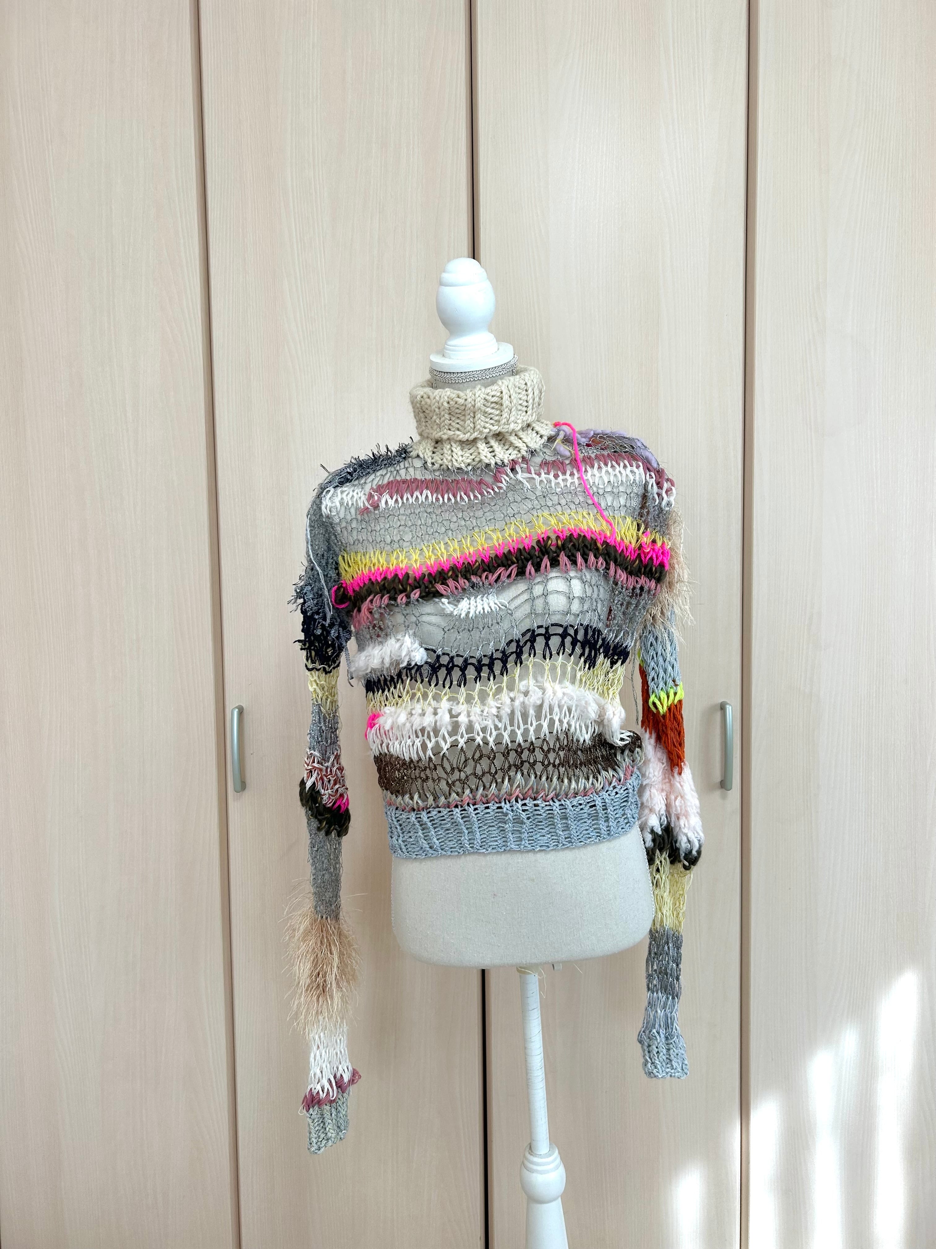 編み物のアイテムには、多少のサイズの違い、お色味の違い、網目のズレなどがある事がございます。