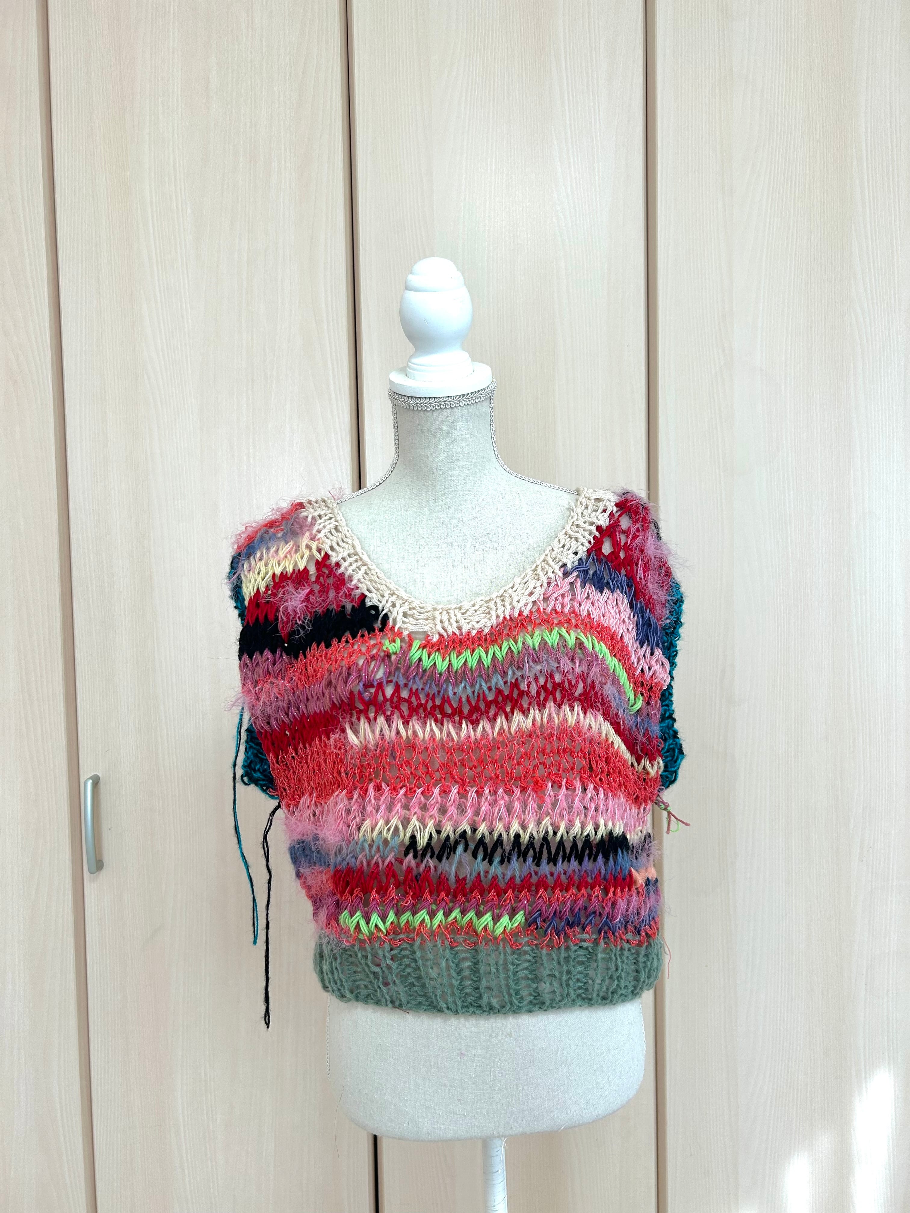 編み物のアイテムには、多少のサイズの違い、お色味の違い、網目のズレなどがある事がございます。