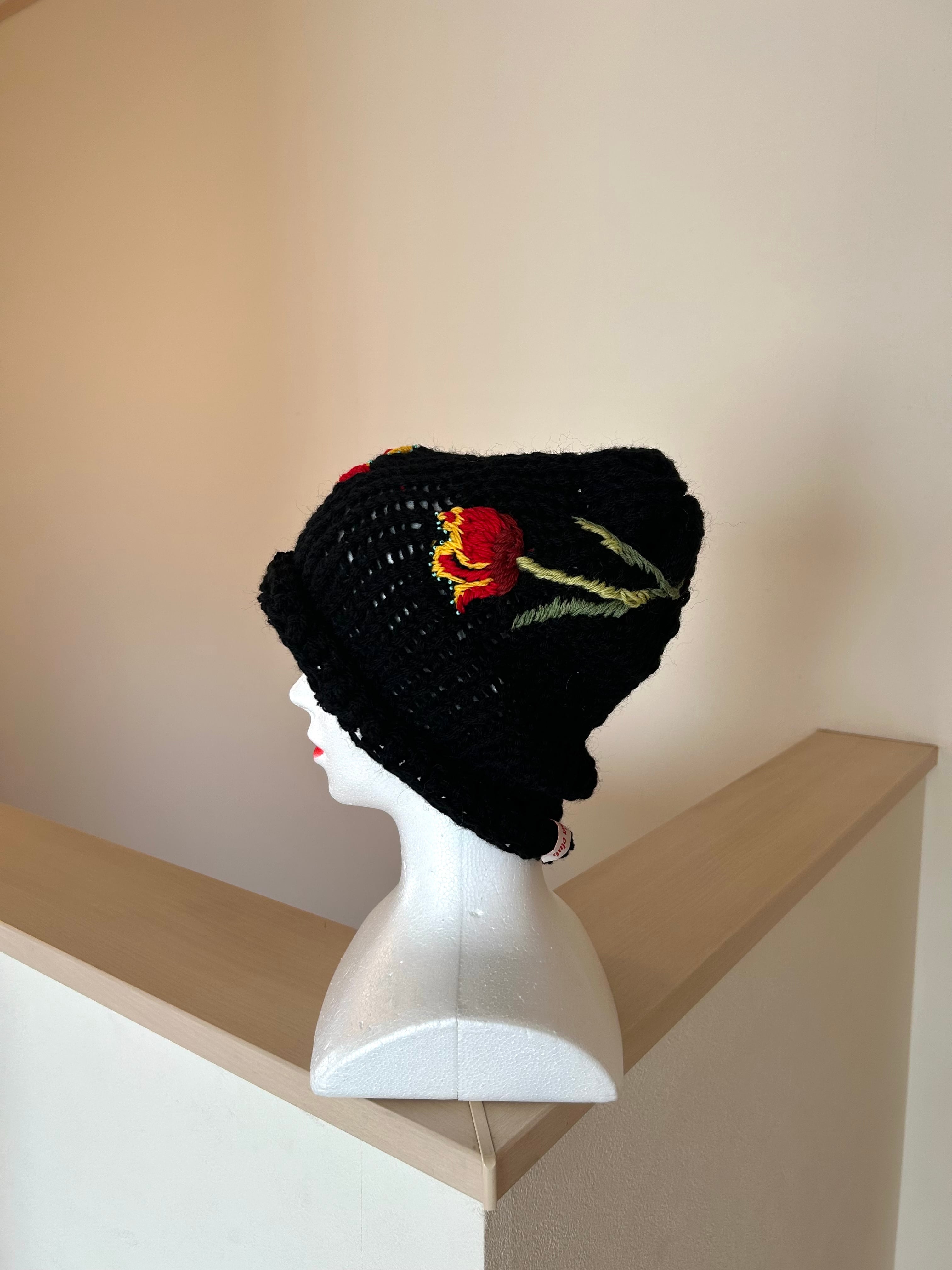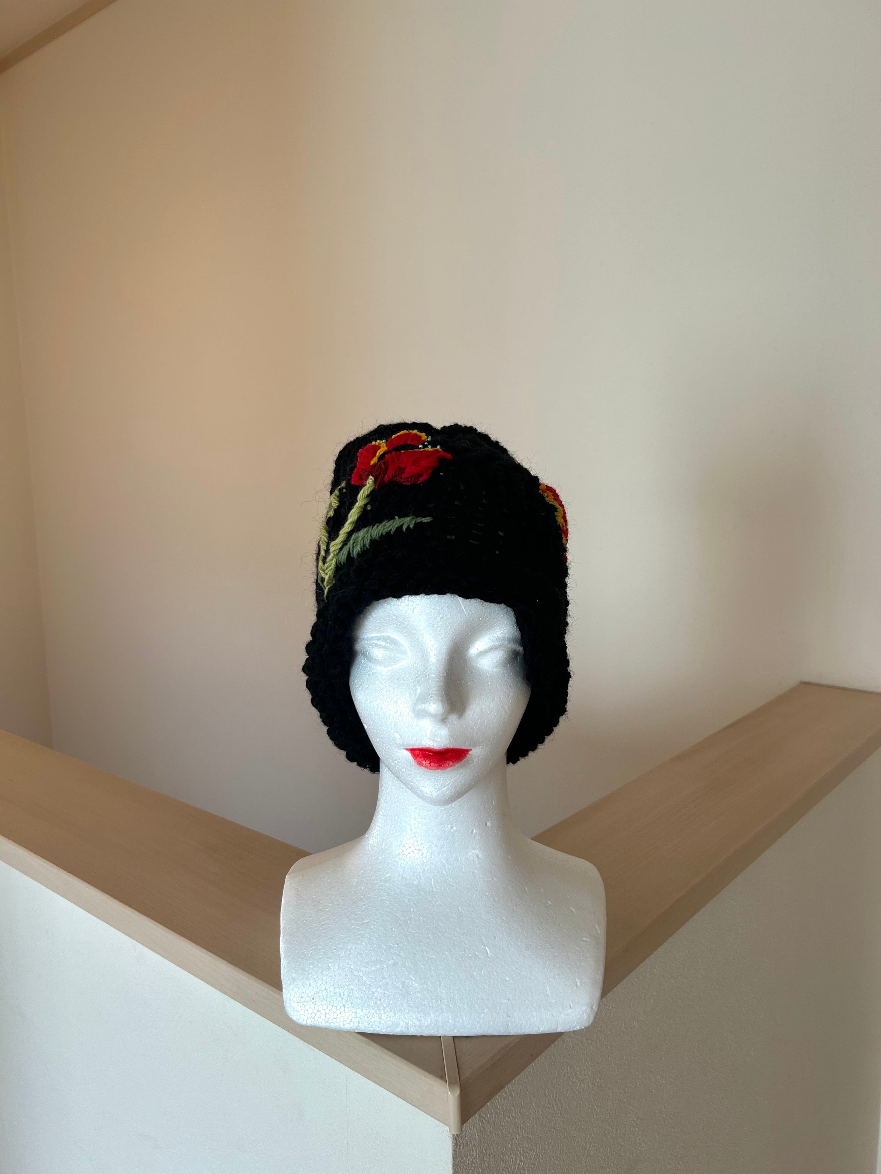 お花の刺繍ニット帽