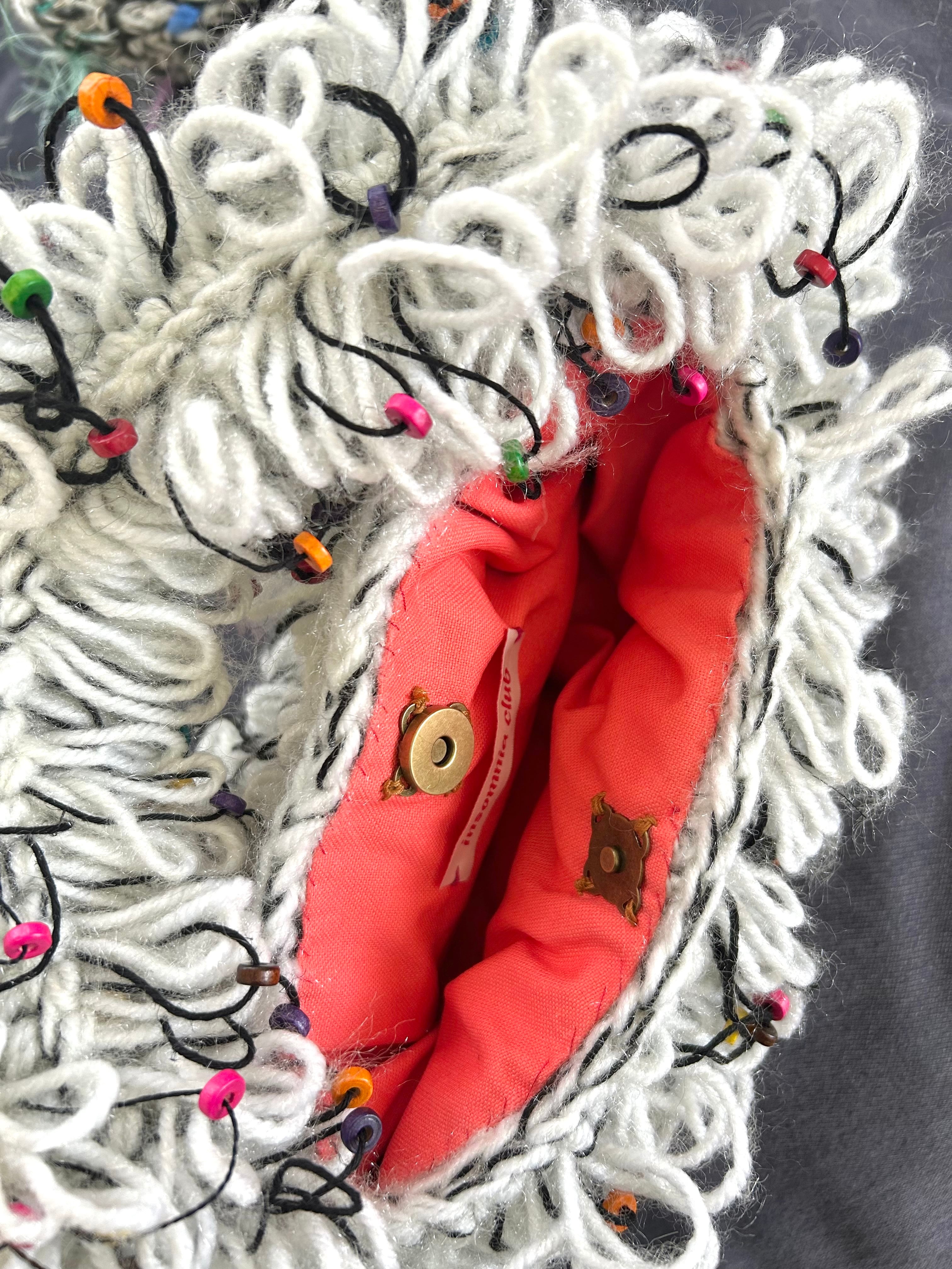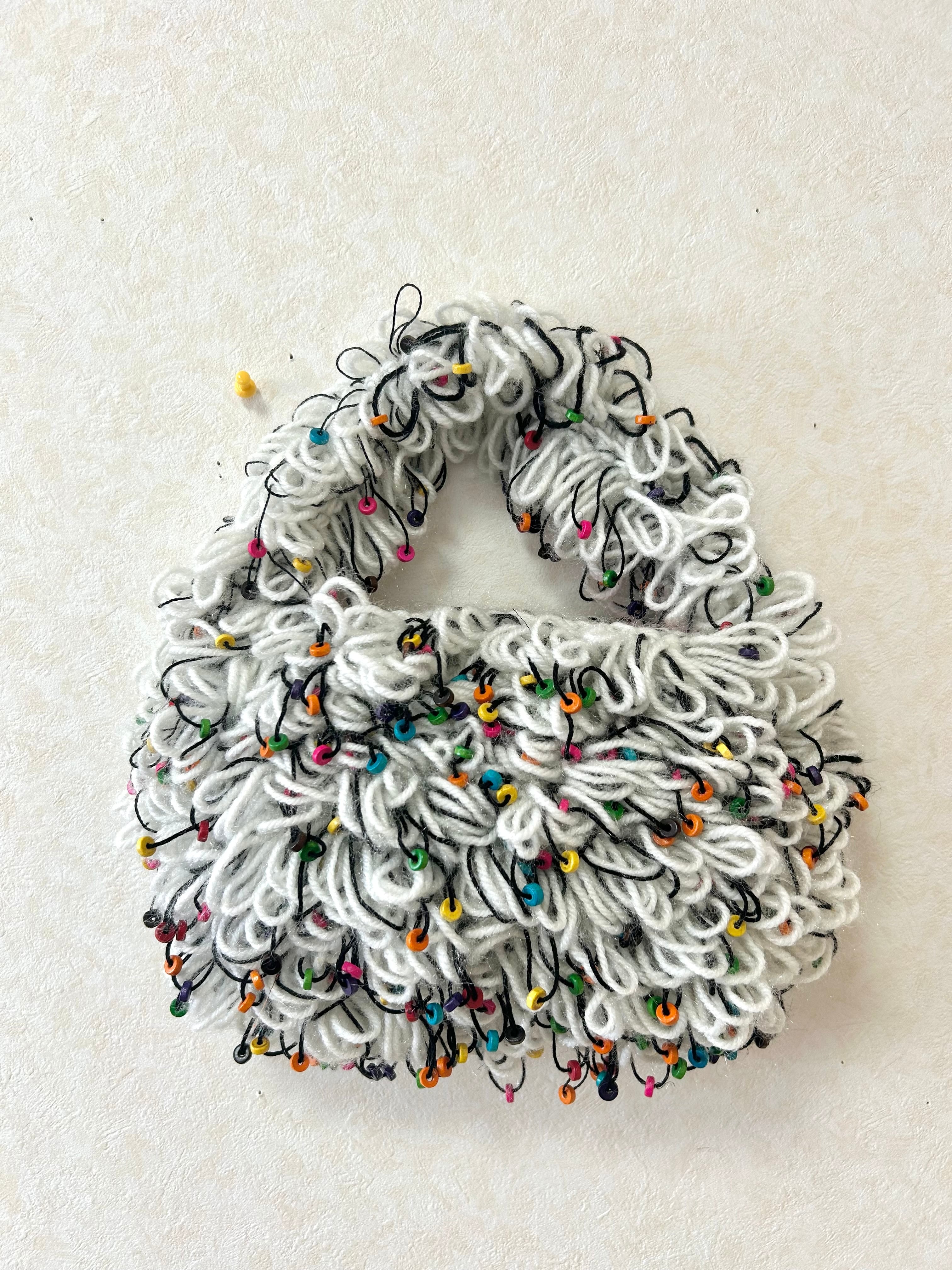 かぎ針で編んだふわふわのバッグです。