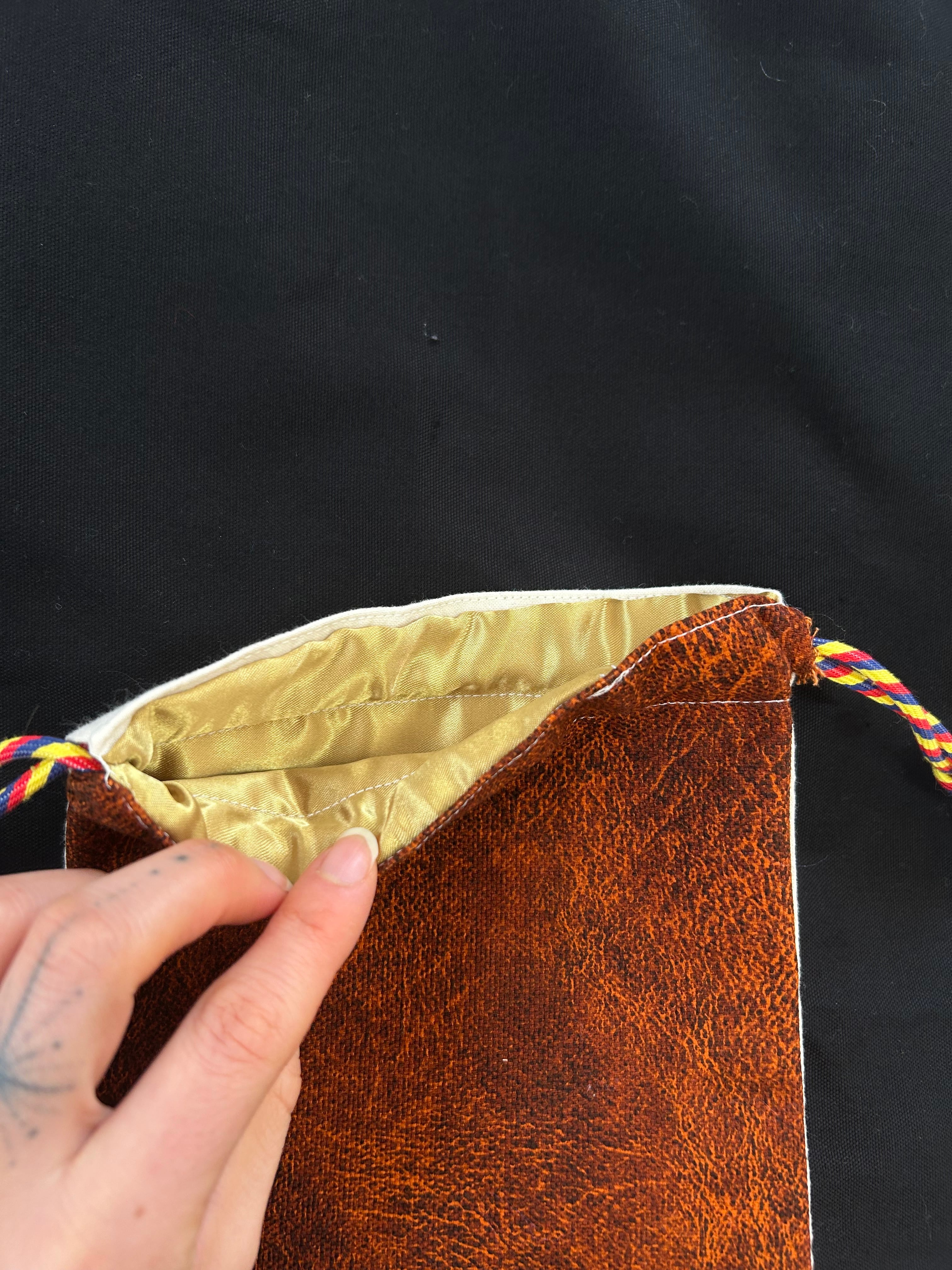 手刺繍でモチーフを表現した巾着になります。