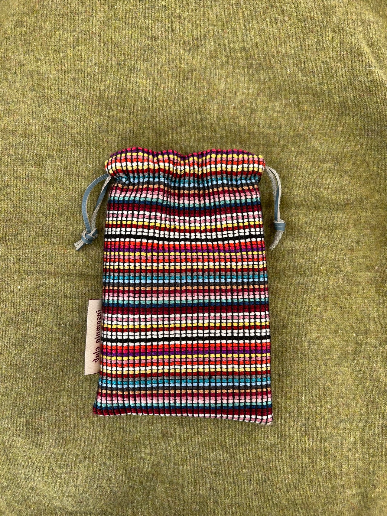手刺繍でモチーフを表現した巾着になります。