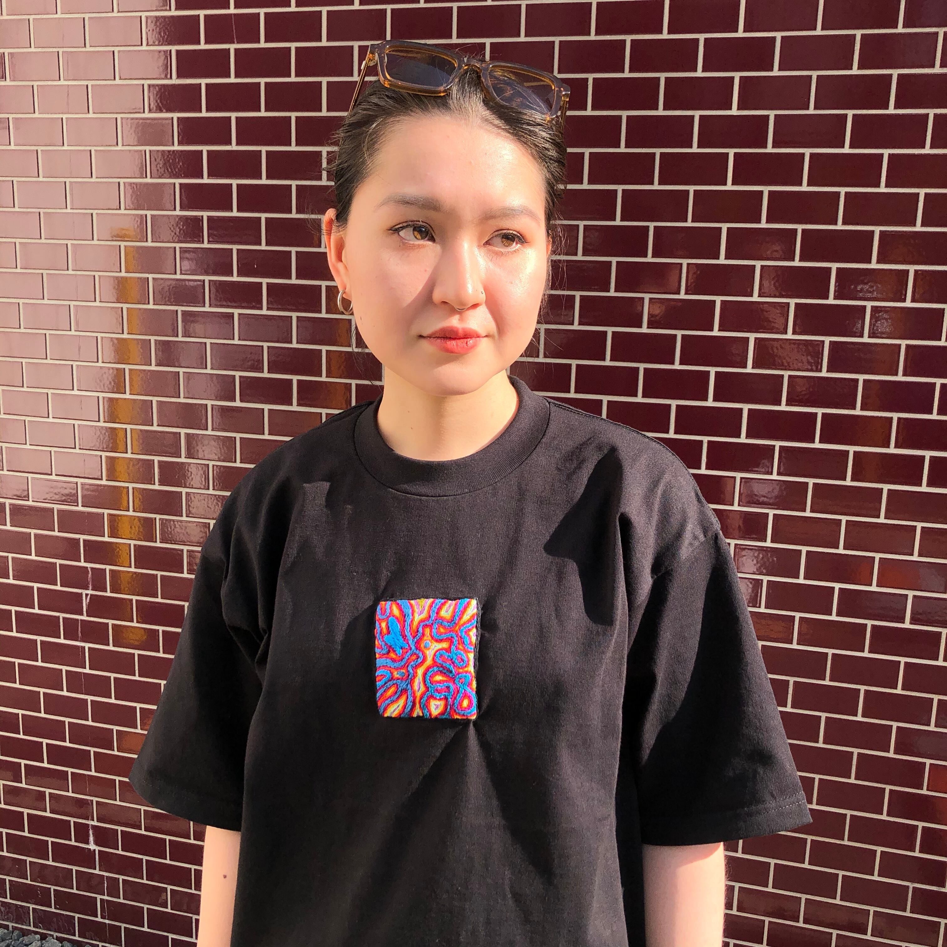 手刺繍で作ったサイケデリックな刺繍Tシャツでございます。