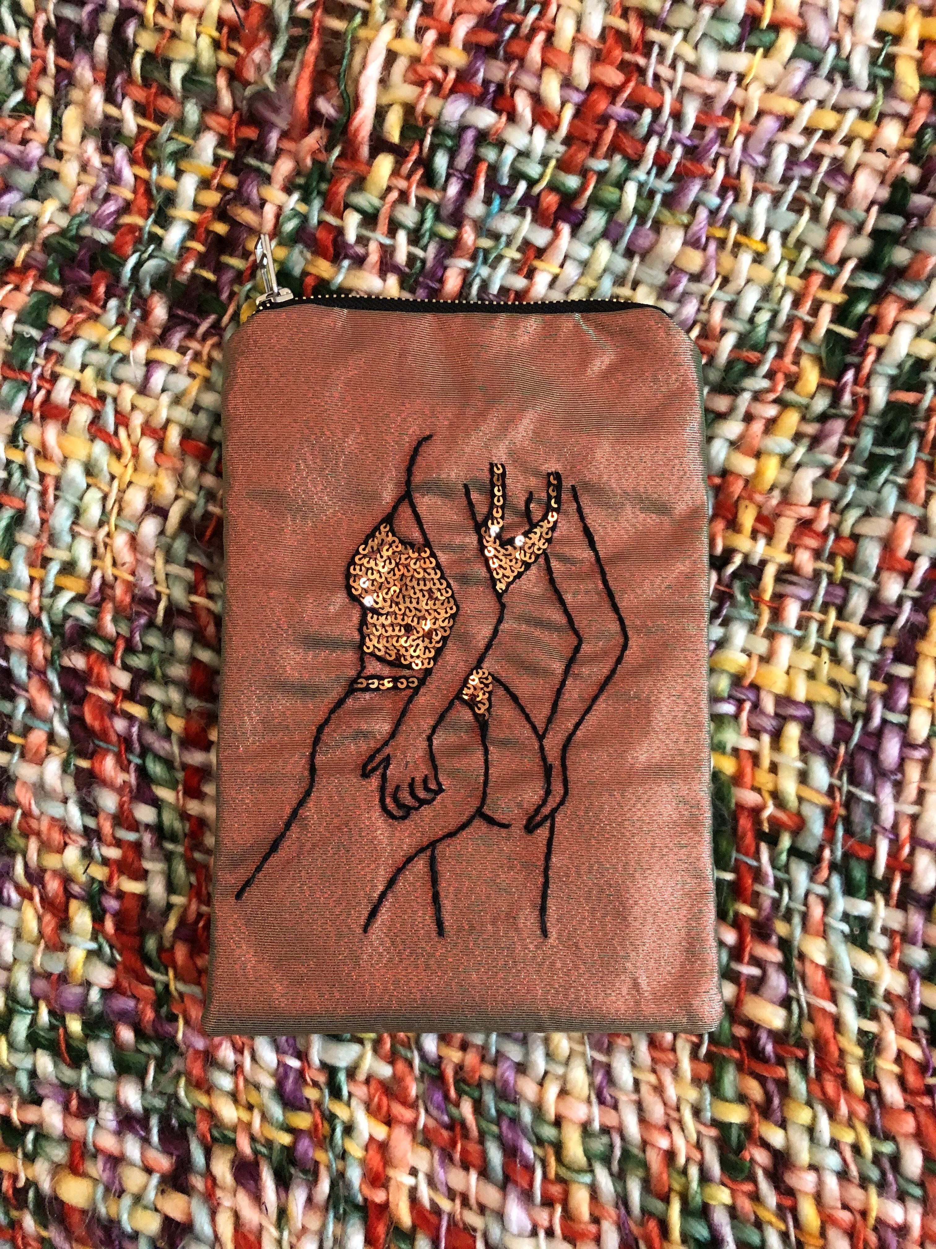 手刺繍によるポーチになります。