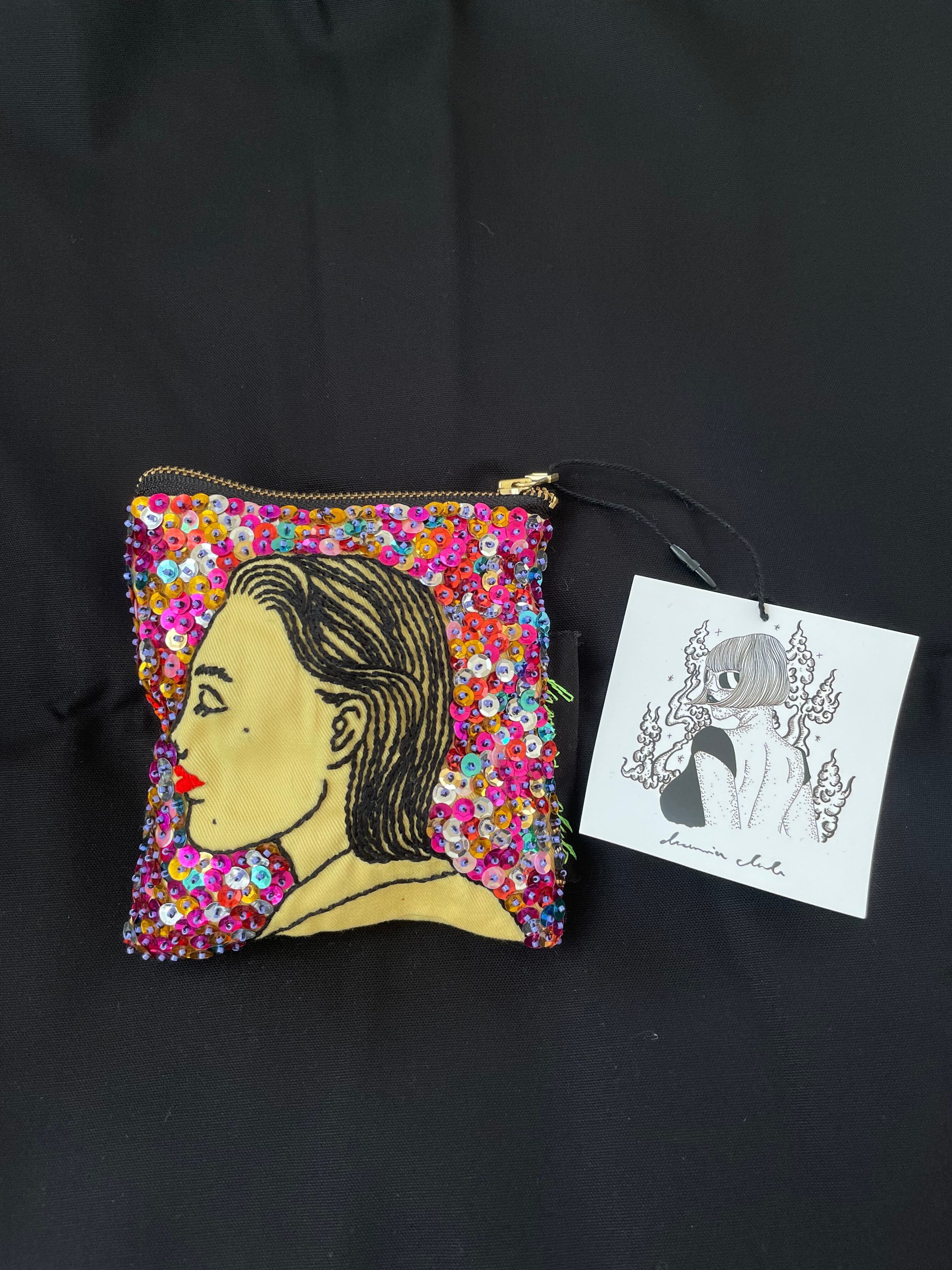 手刺繍とスパンコールパラダイスのポーチになります。一見スパンコールのアイテムは扱いにくいと思われるかもしれませんが手縫いで一つ一つしっかりとビーズで縫い止めている為案外丈夫なのです^^