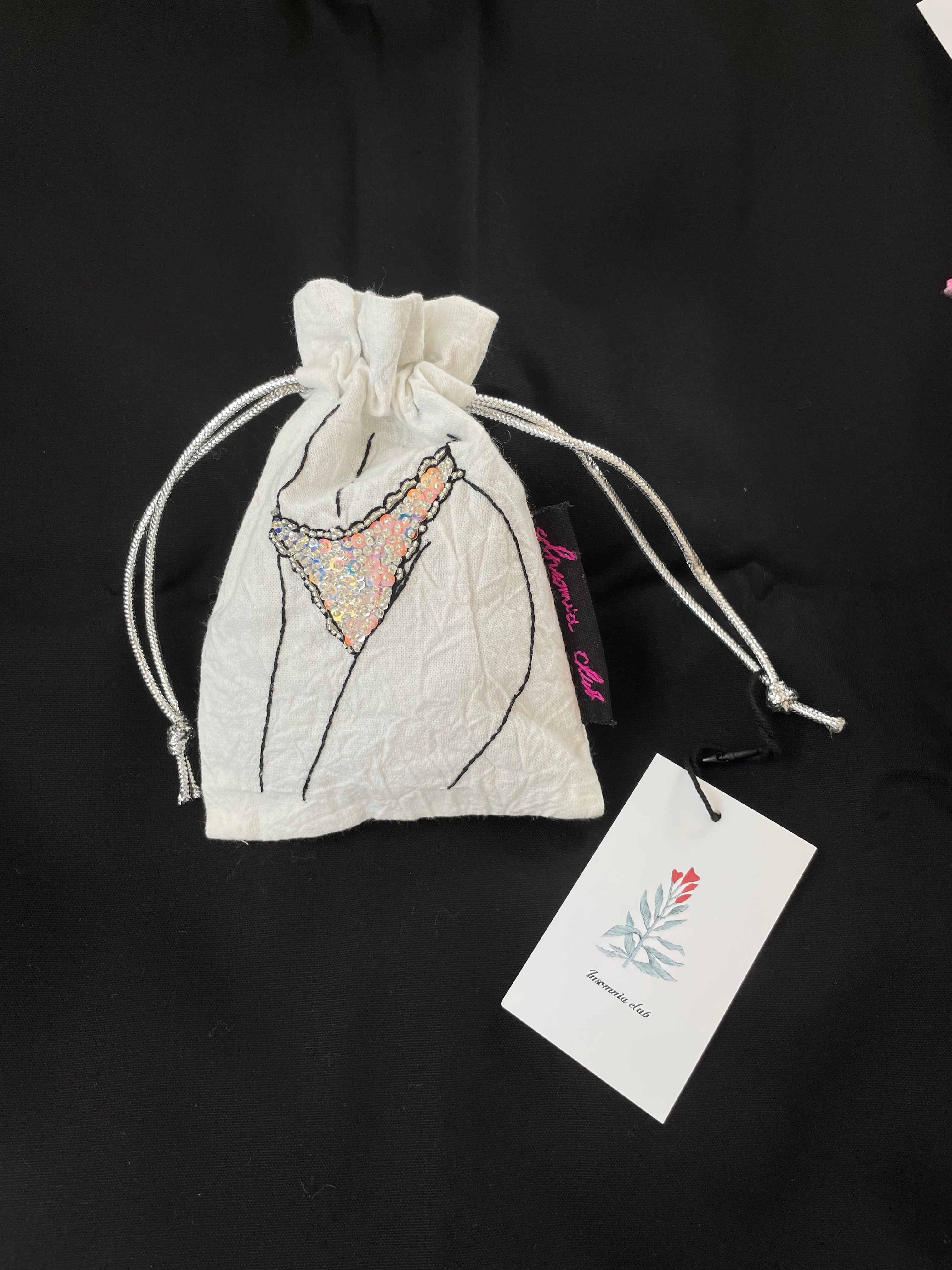 キラキラに輝くスパンコールとビーズを使ってセクシーな巾着をお作りいたしました。