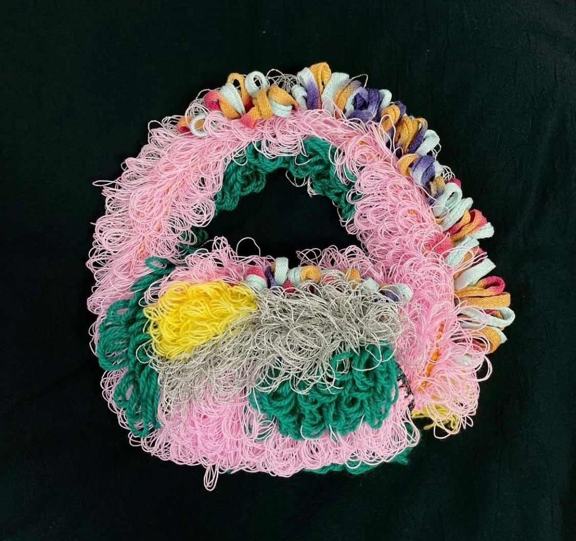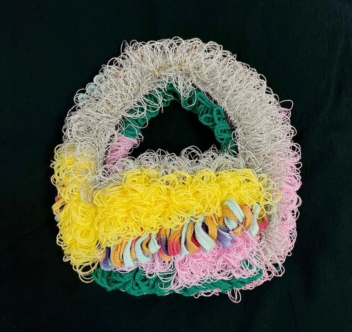 色んな場所から集めたいろんな素材の毛糸を組み合わせてお作りいたしました。
